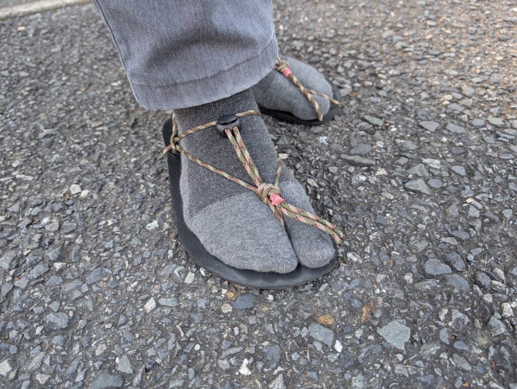このソックスとワラーチの相性が抜群で、100キロの間にマメが潰れたり、足の爪が割れたりは一切ありませんでした。